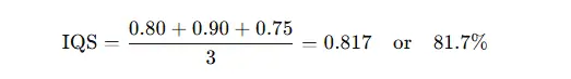 No existe una fórmula universal para el IQS; cada empresa define su propio conjunto de indicadores y reglas de puntuación. A continuación, se presenta un ejemplo simple utilizando un promedio no ponderado de tres indicadores: