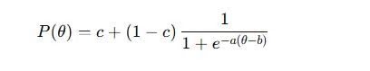 - Modelo 3PL. Agrega el parámetro de adivinanza (c), que representa la probabilidad de responder correctamente al ítem únicamente por adivinanza (especialmente para ítems de opción múltiple).