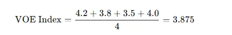 No hay una fórmula universal de VOE. En su lugar, las empresas suelen crear un índice de VOE que agrega varios indicadores internos.