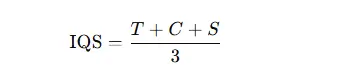 Não existe uma fórmula universal para o IQS; cada empresa define seu próprio conjunto de indicadores e regras de pontuação. Abaixo está um exemplo simples usando uma média não ponderada de três indicadores: